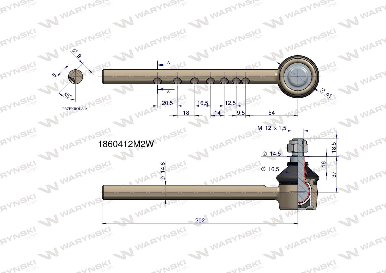 Przegub kierowniczy 202mm 1860412M2 WARYŃSKI