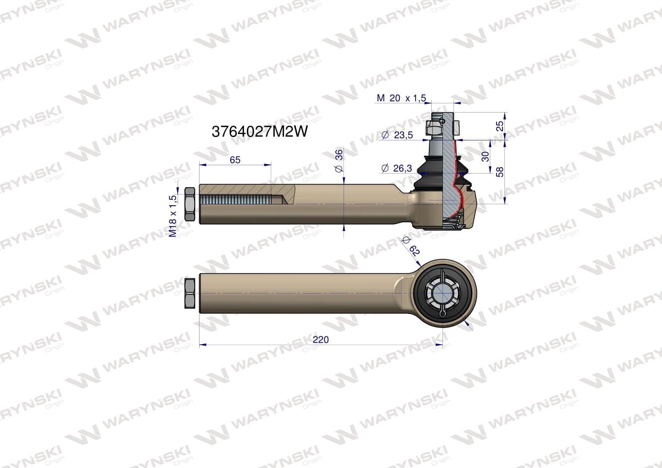 Przegub kierowniczy 220mm- M18x1,5 3764027M2 WARYŃSKI