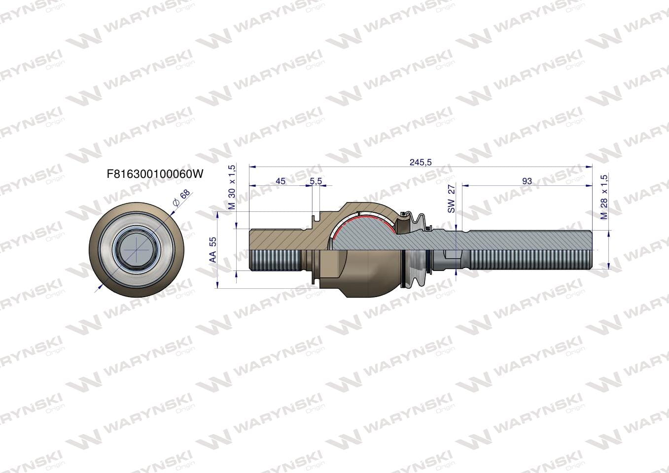 Przegub kierowniczy 245,5mm- M30x1,5; M28x1,5 F816300100060 WARYŃSKI
