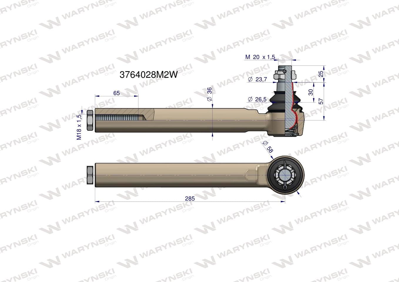 Przegub kierowniczy 285mm- M18x1,5 3764028M2 WARYŃSKI