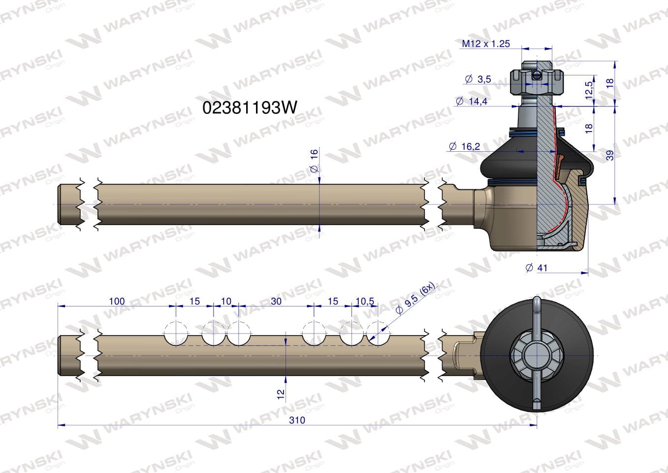Przegub kierowniczy 310mm 02381193 WARYŃSKI