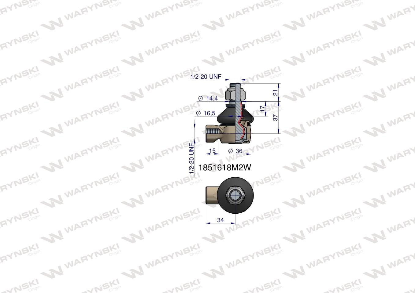Przegub kierowniczy 34mm- 1/2-20 1851618M2 WARYŃSKI