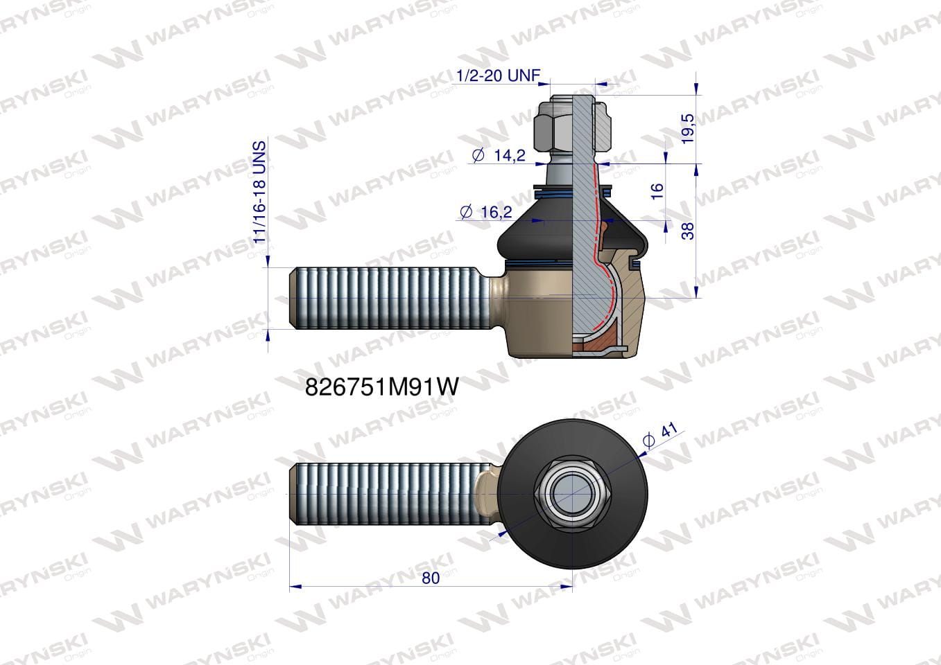 Przegub kierowniczy 80mm- 11/16-18 826751M91 WARYŃSKI
