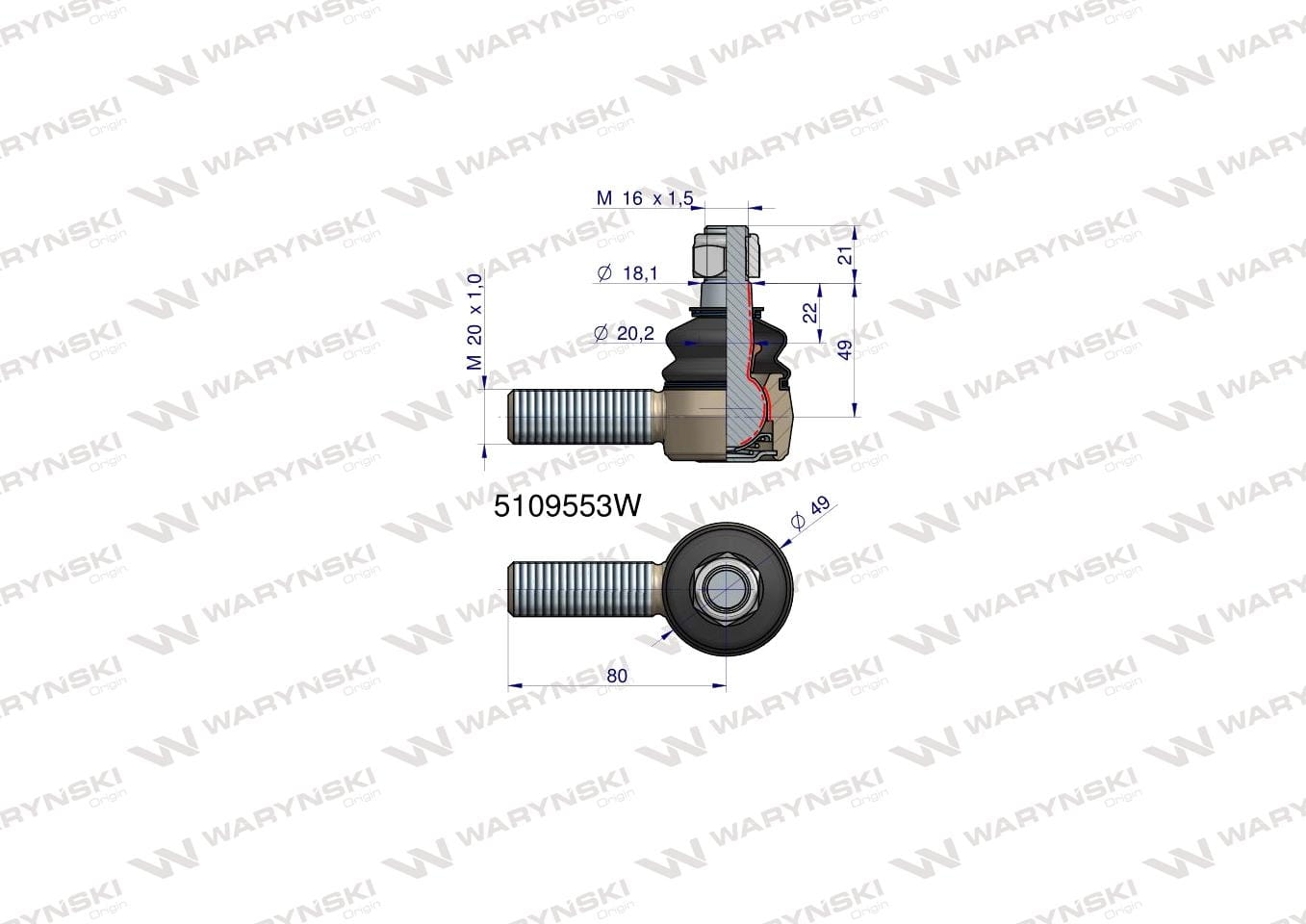 Przegub kierowniczy 80mm M20x1 5109553 WARYŃSKI