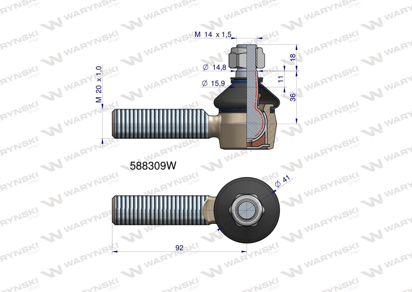 Przegub kierowniczy 92mm- M20x1,0 588309 WARYŃSKI