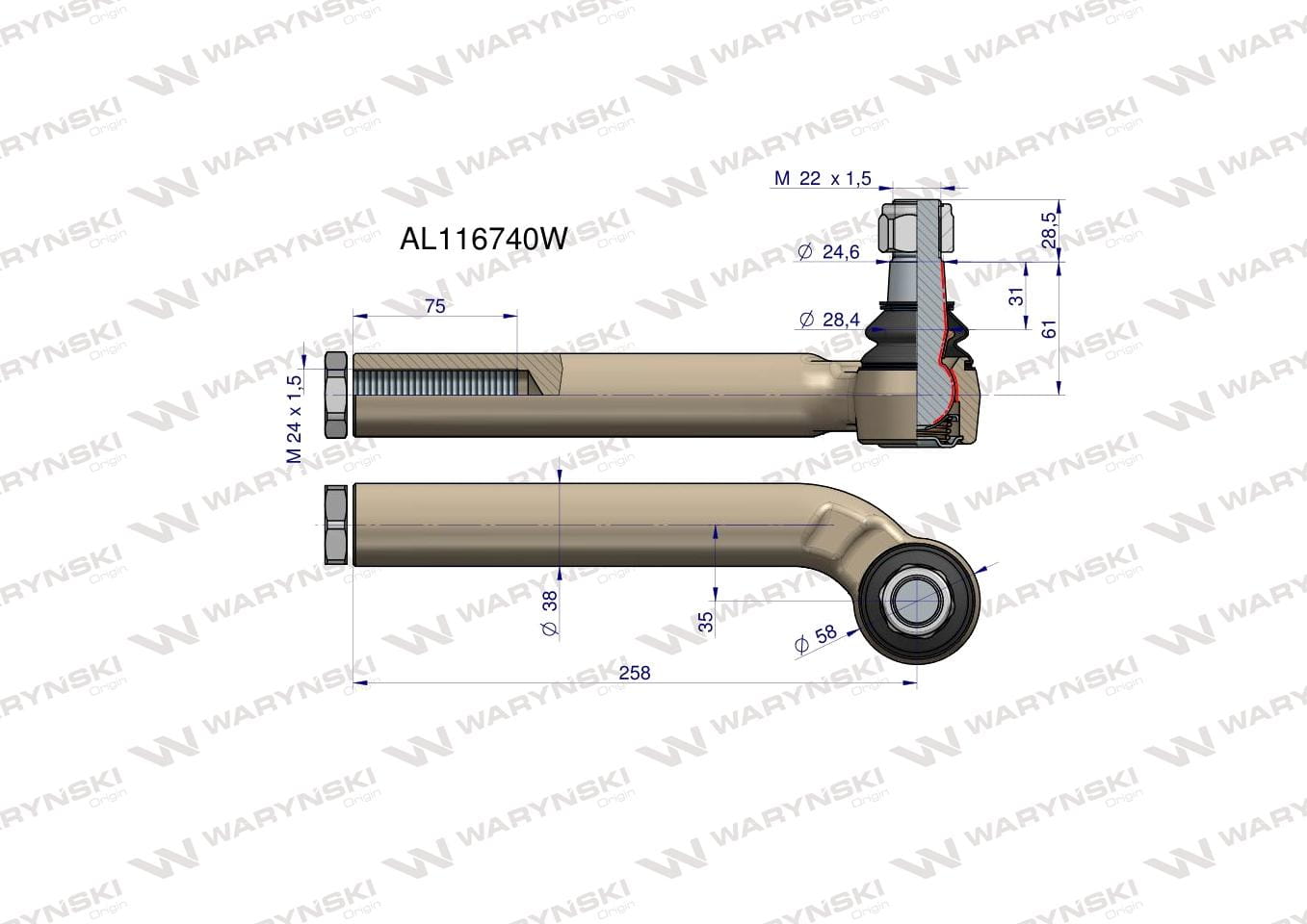 Przegub kierowniczy lewy 258mm- 24x1,5 AL116740 WARYŃSKI