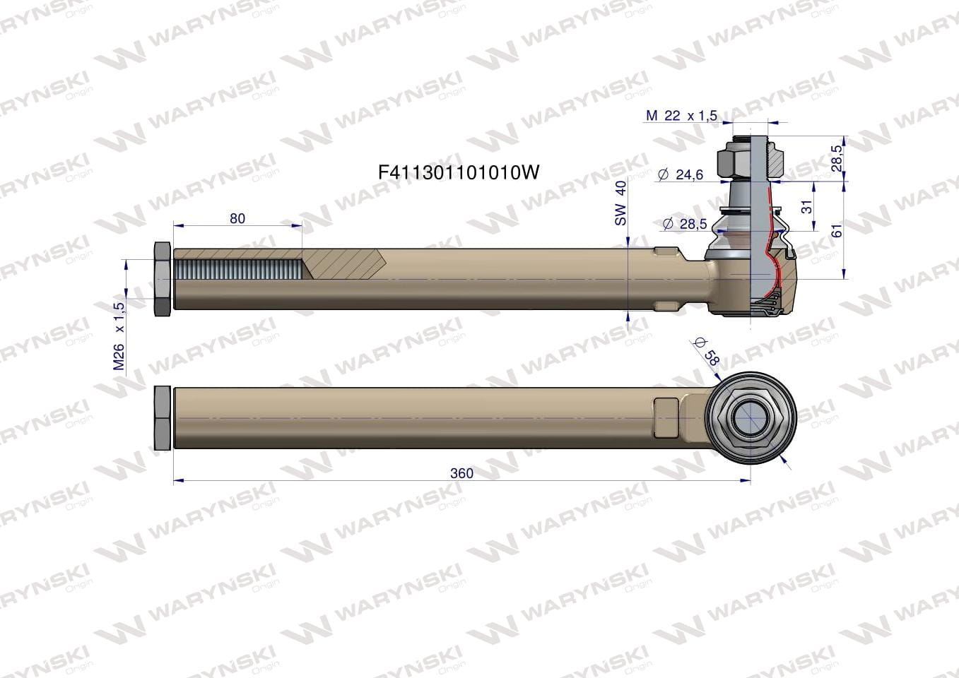 Przegub kierowniczy prawy/lewy 360mm- M26x1,5 F411301101010 WARYŃSKI