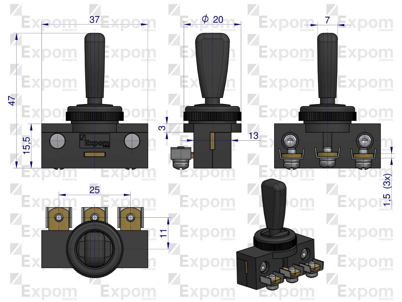 Przełącznik kierunkowskazu w marce Expom Kwidzyn to produkt wykonany z najwyższą starannością z materiałów najlepszej jakości. W przełączniku znajdują się trzy przyłącza śrubowe wykonane z miedzi jego konstrukcja jest hebelkowa dwupołożeniową.