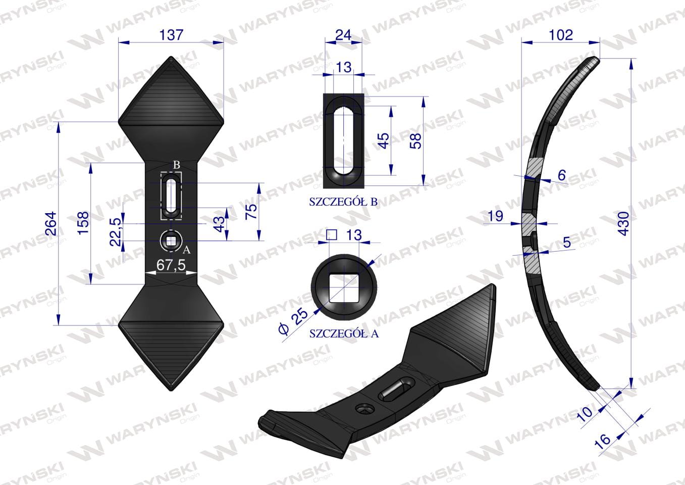 Redlica agregatu podorywkowego sercowa 1738000000 Gruber stal borowa Napawane WARYŃSKI