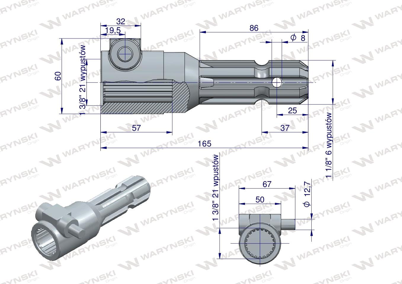 Redukcja adapter na trzpień 1 3/8" 21 wpustów na wałek 1 3/8" 6 wpustów WARYŃSKI