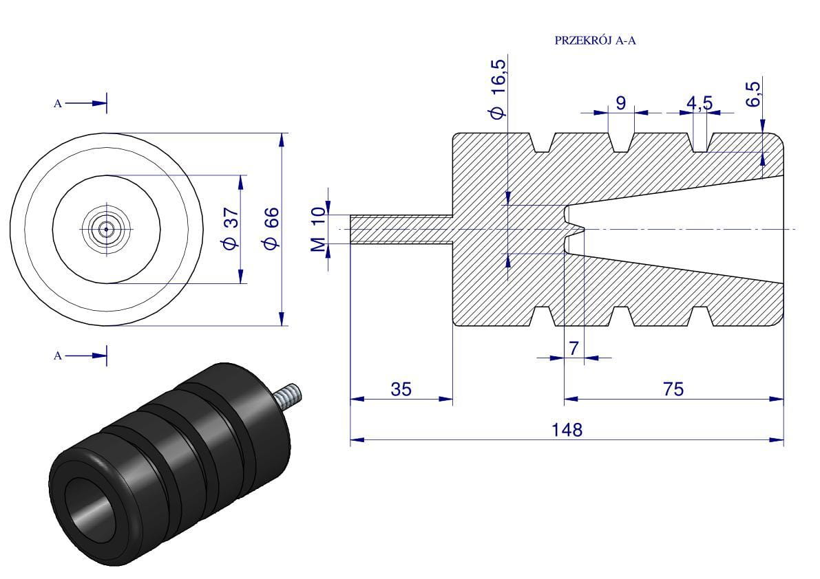 Resor odbój gumowy śruba M10 wysokość 114mm prosty NR-188 Przyczepa