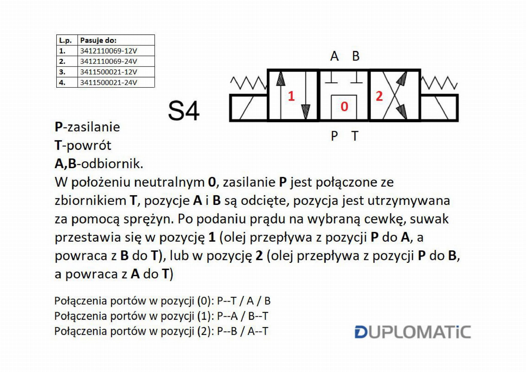 Rozdzielacz (elektrozawór) DL3-S4/10N-D12 12V DC (cewka x 2) Compact 280bar. 50l/min Duplomatic