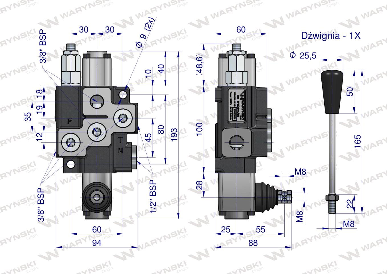 Rozdzielacz hydrauliczny 1-sekcyjny (sekcja nurnikowa) max przepływ 40L Waryński