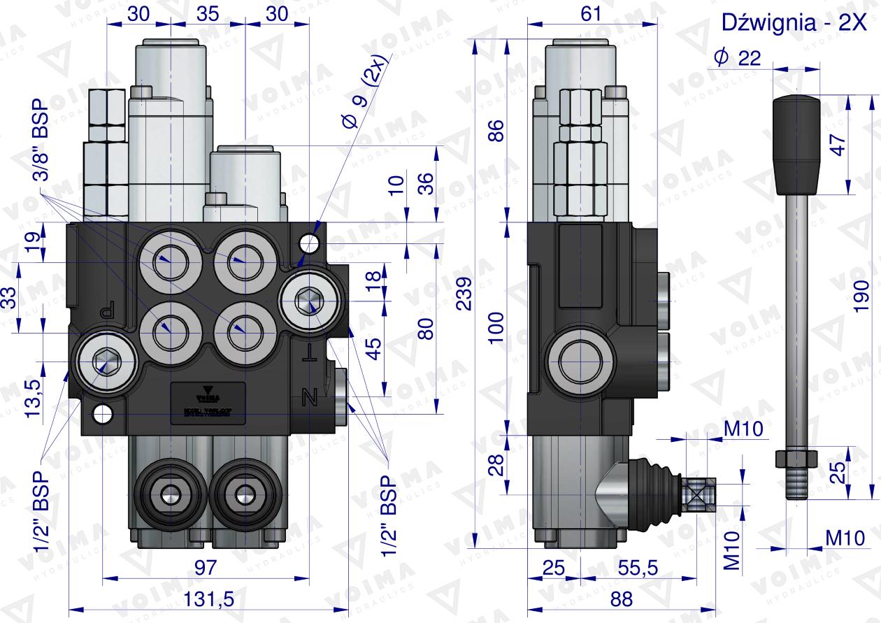 Rozdzielacz hydrauliczny 2-sekcyjny 40L (1-sekcja pływająca) VOIMA