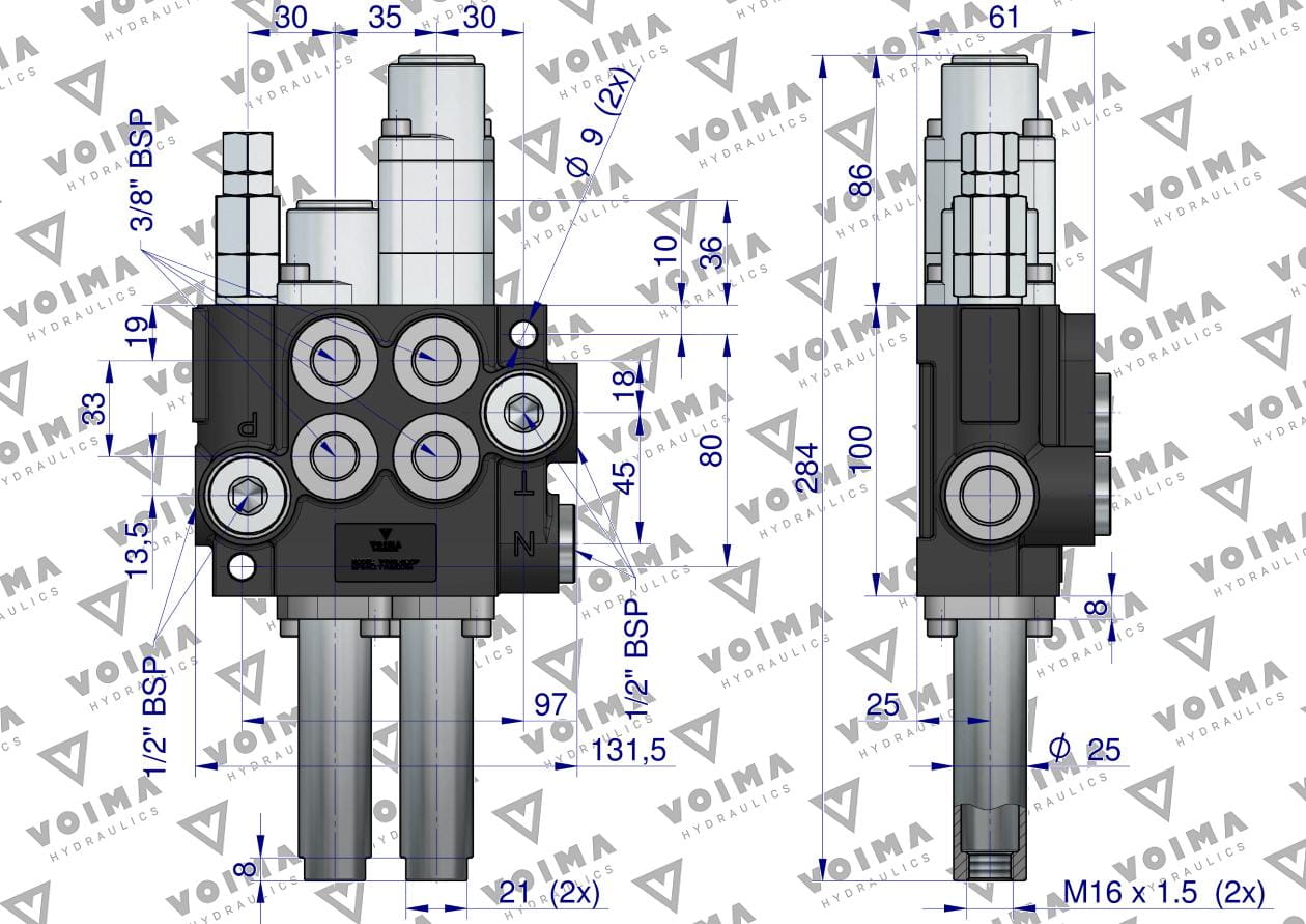 Rozdzielacz hydrauliczny 2-sekcyjny 40L (1-sekcja pływająca) sterowany na linkę VOIMA