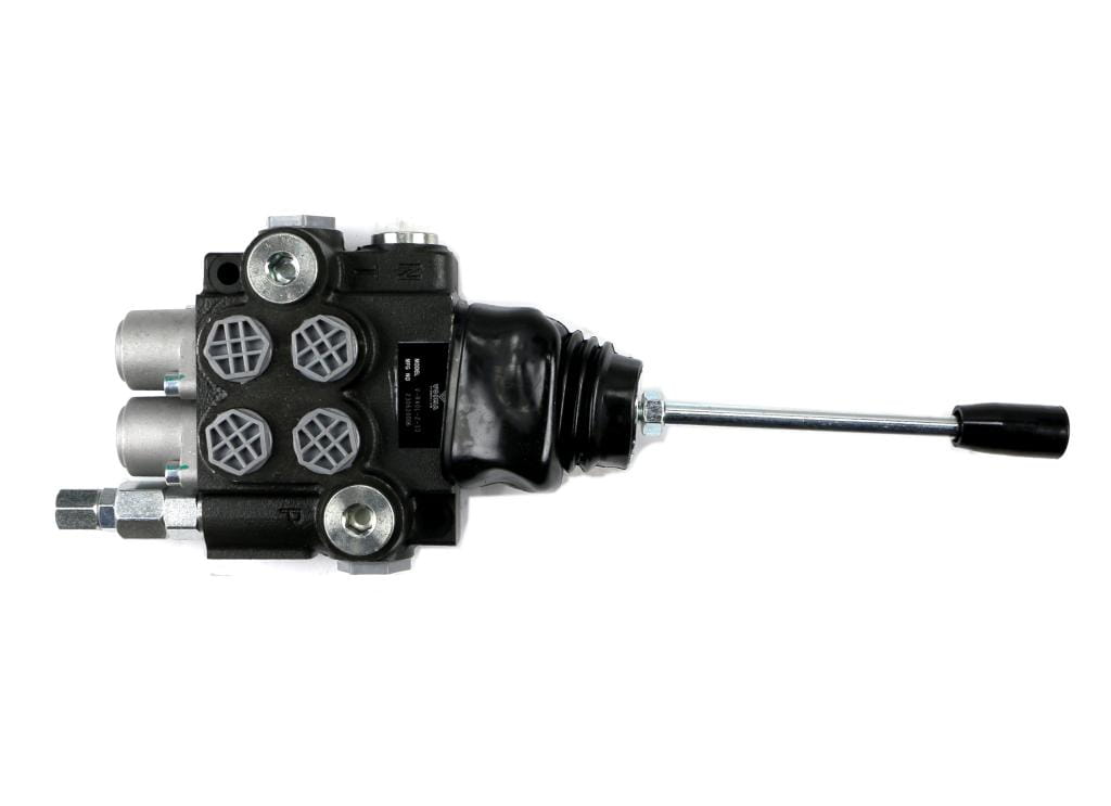 Rozdzielacz hydrauliczny 2-sekcyjny 40L z joystickiem VOIMA - monoblokowy z układem równoległym z neutralną pozycją środkową, sterowany za pomocą 1 dźwigni (joystick)