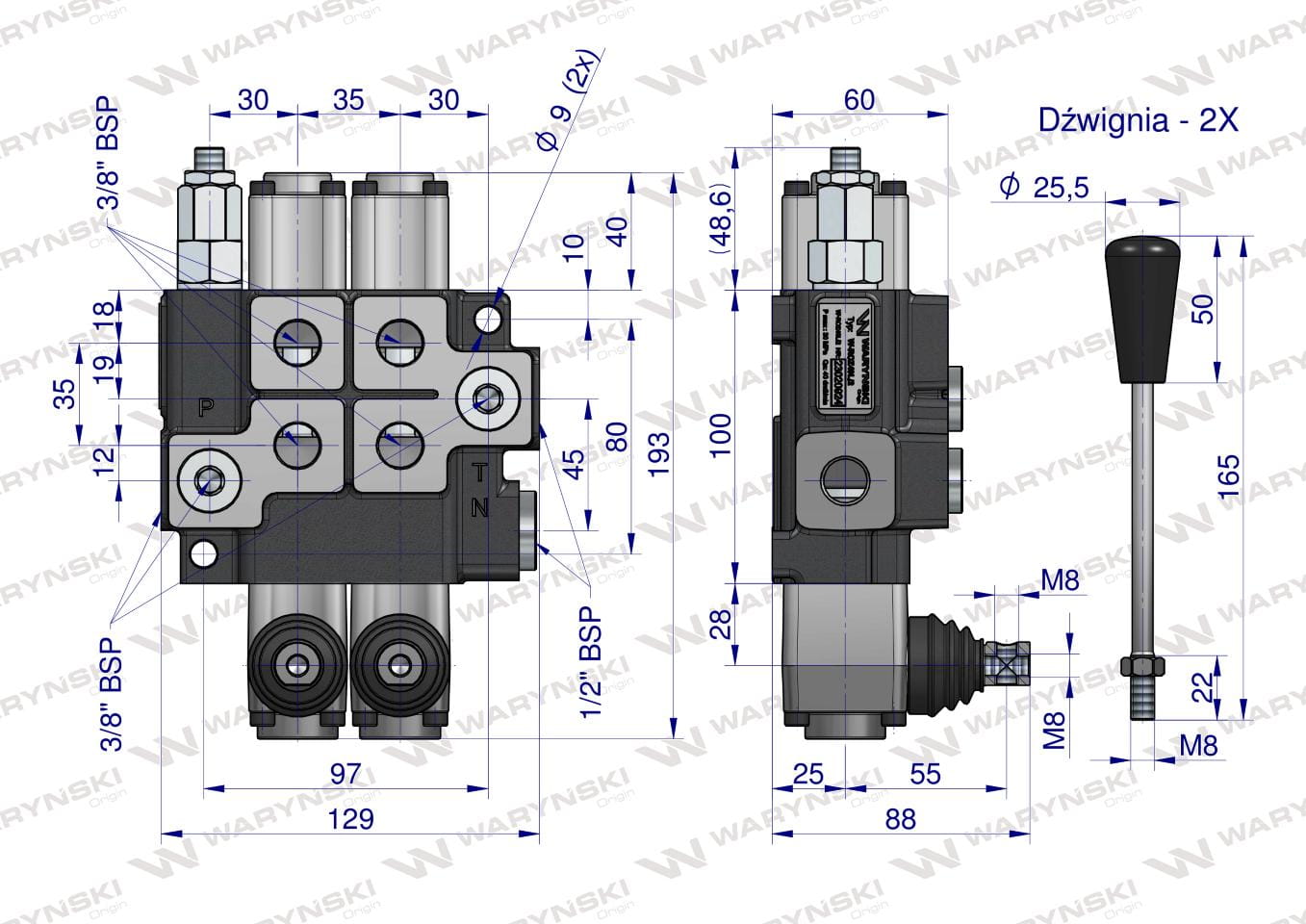 Rozdzielacz hydrauliczny 2-sekcyjny max przepływ 40L Waryński