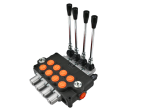 Rozdzielacz hydrauliczny 4-sekcyjny 120L VOIMA - monoblokowy z układem równoległym z neutralną pozycją środkową. Olej w pozycji neutralnej krąży między pompą hydrauliczną a zbiornikiem.