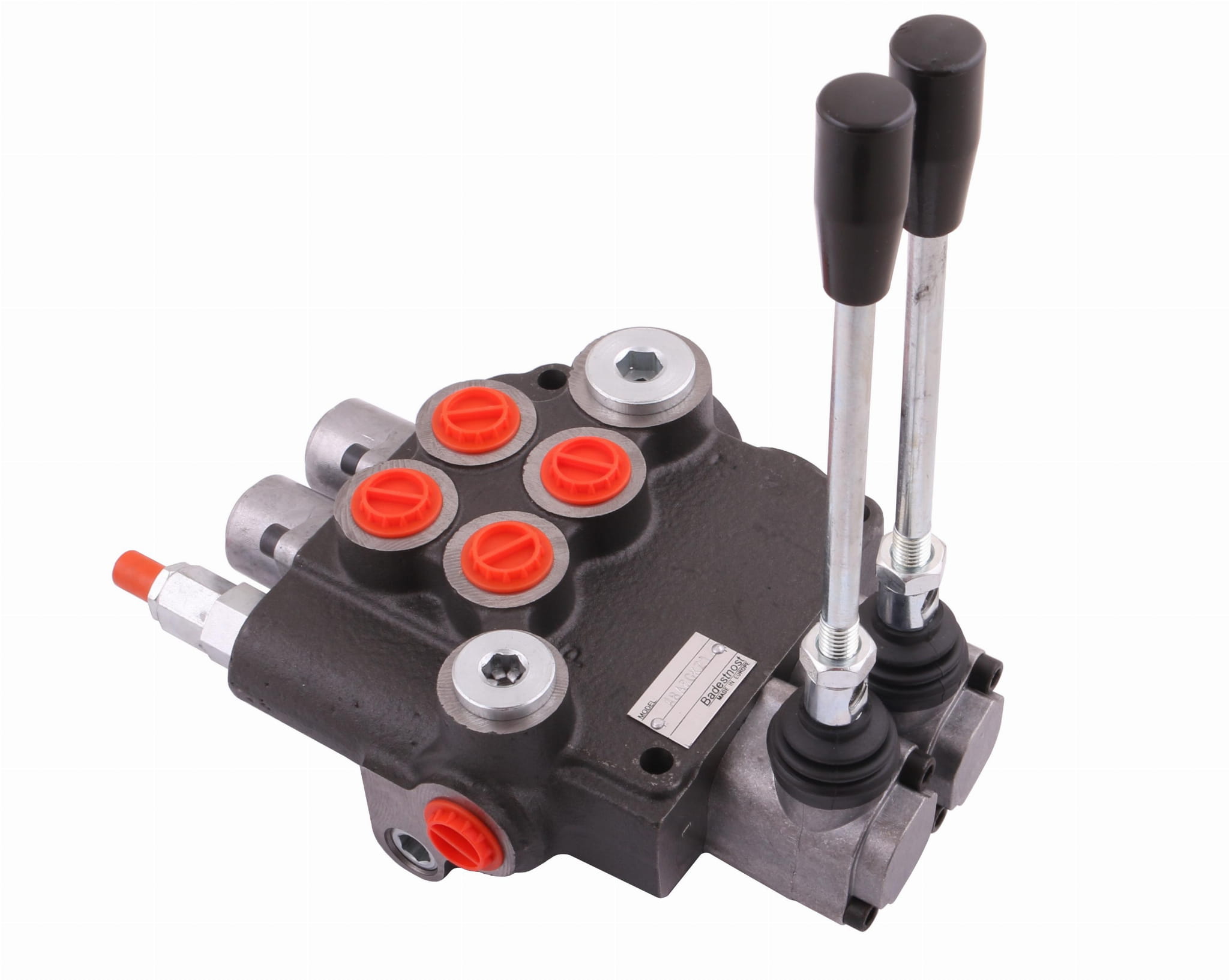 Rozdzielacz hydrauliczny dwusekcyjny (2-sekcyjny) 80L z zatrzaskami