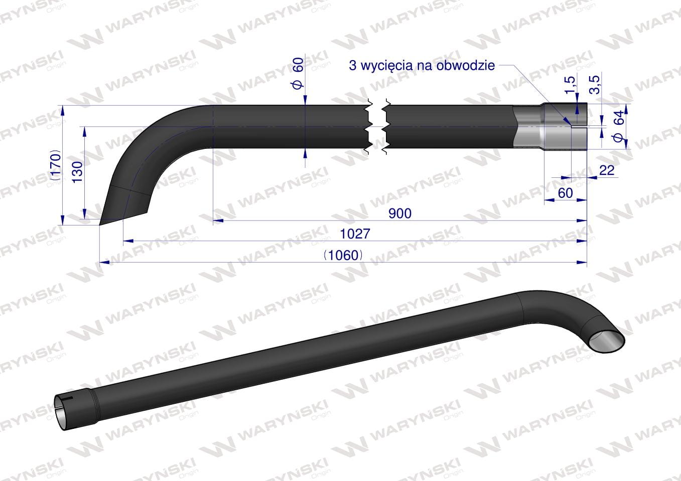 Rura wylotowa do tłumika 3383013M1 3388432M2W WARYŃSKI