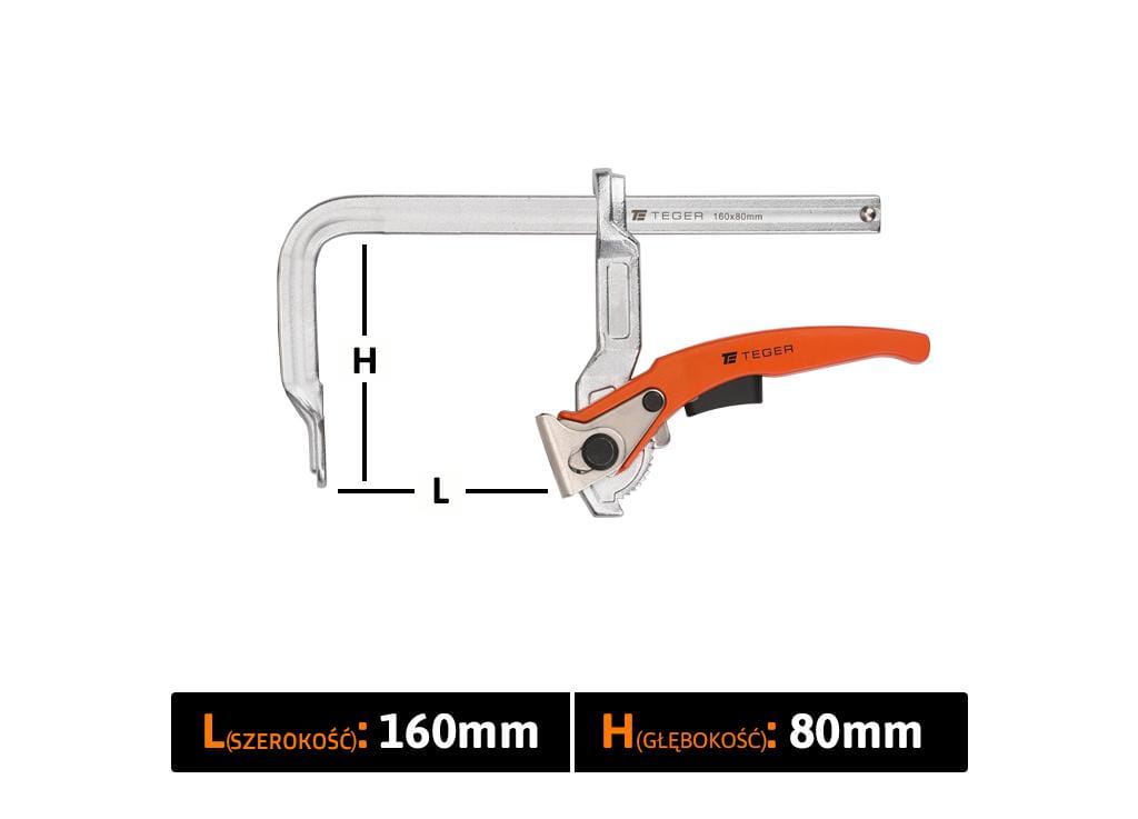 Ścisk ślusarski dźwigniowy szybkomocujący 80x160 mm Teger