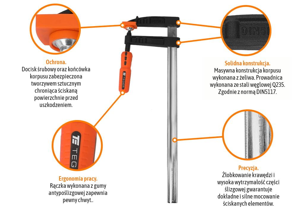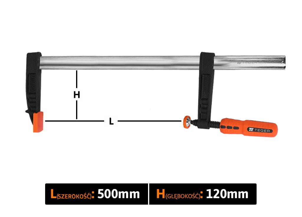 Ścisk stolarski śrubowy, TYP F 120x500 mm, Teger