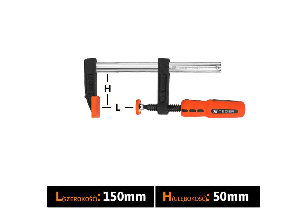 Ścisk stolarski śrubowy, TYP F 50x150 mm, Teger