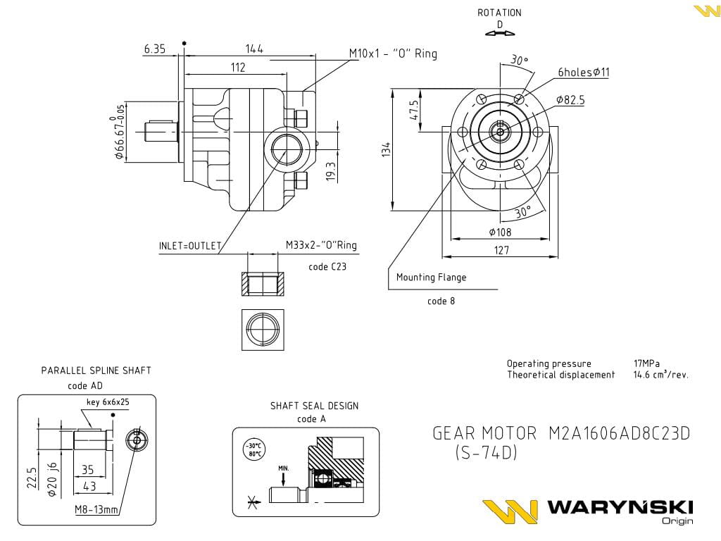 Silnik hydrauliczny S-74D M2A1606AD8C23D Waryński