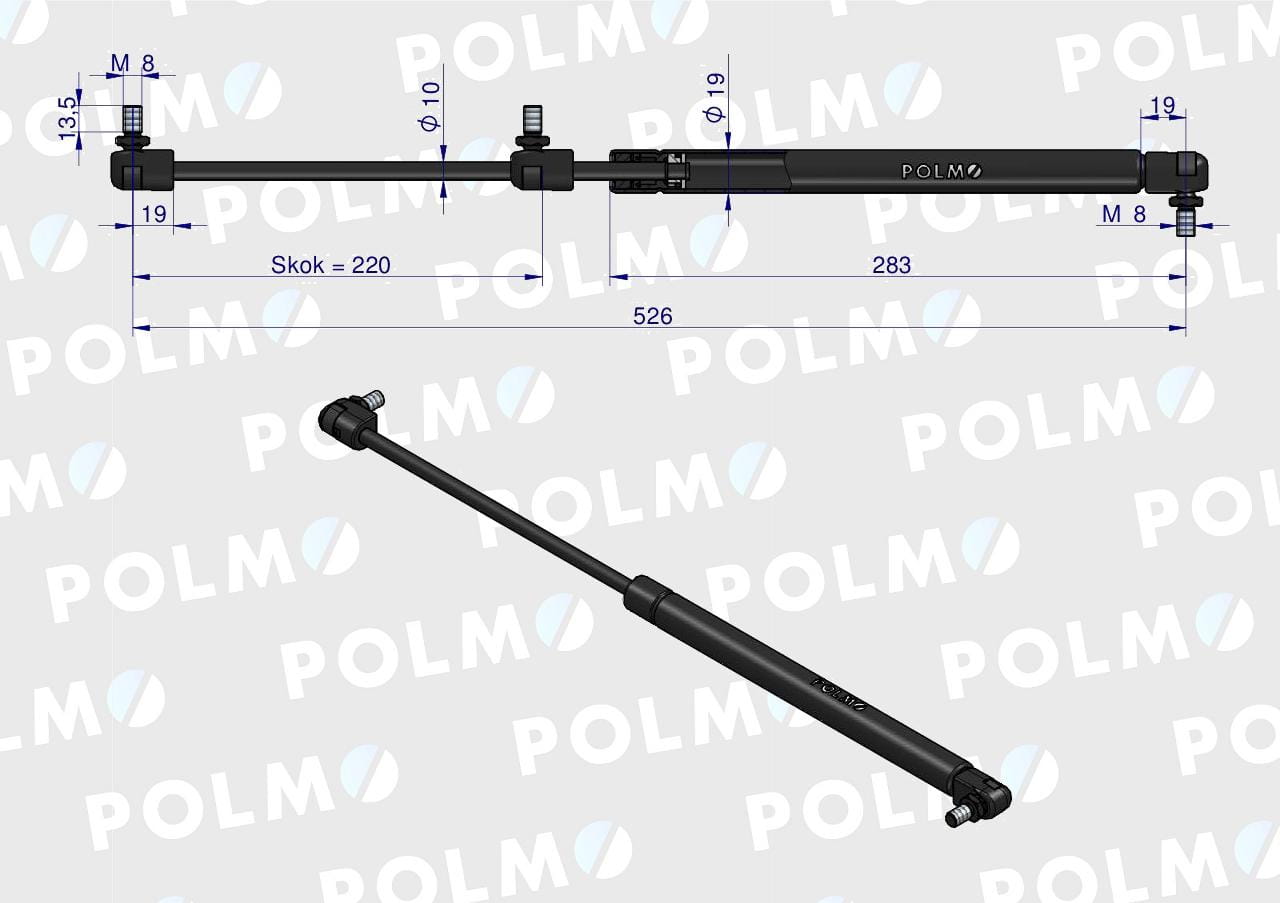 Siłownik L max. 526mm 4274843M1P MASSEY FERGUSON POLMO