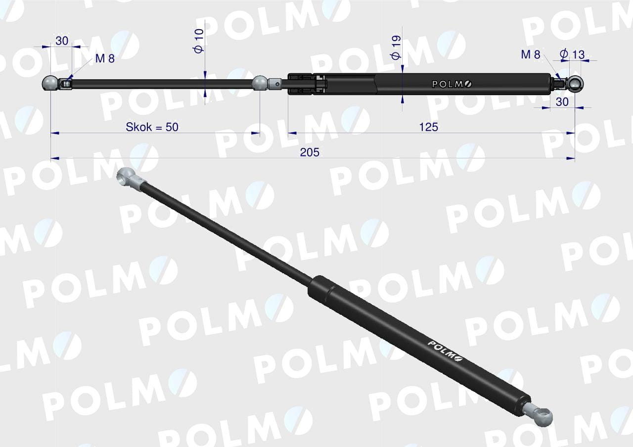 Siłownik drzwi L max. 205mm 81878231P FORD POLMO