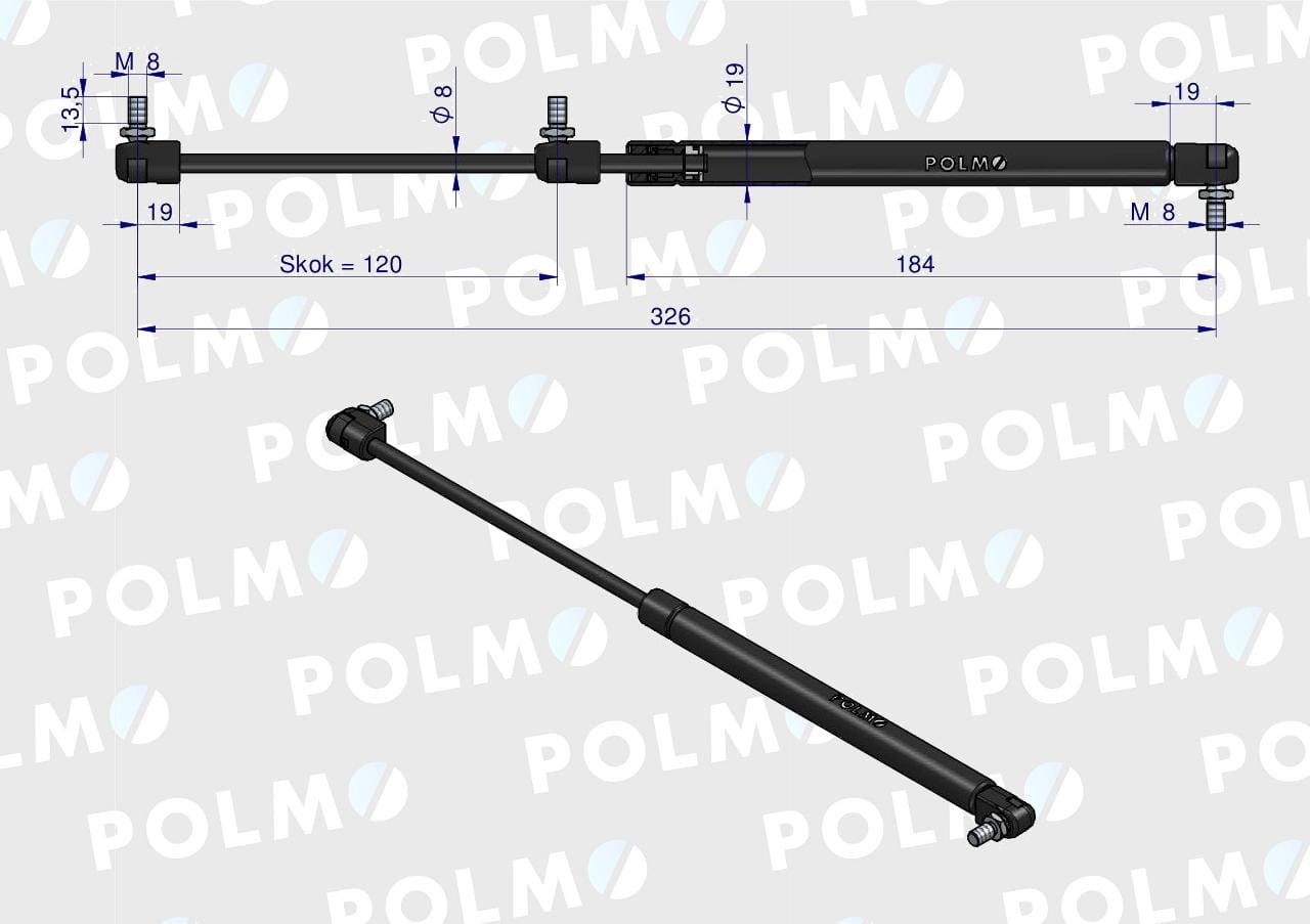 Siłownik drzwi L max. 326mm 65421004 1-99-976-060 STEYR POLMO