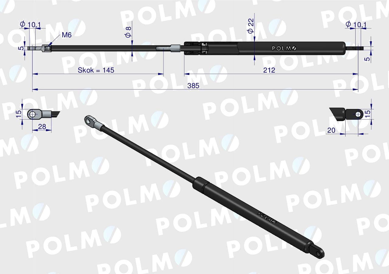Siłownik maski L max. 385mm 65415046 MASSEY FERGUSON POLMO