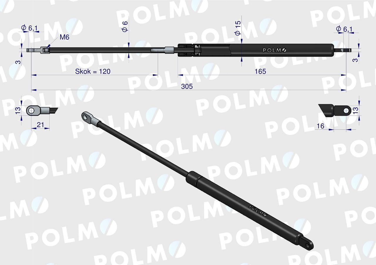 Siłownik maski silnika L max. 305mm 4272076M0P MASSEY FERGUSON POLMO