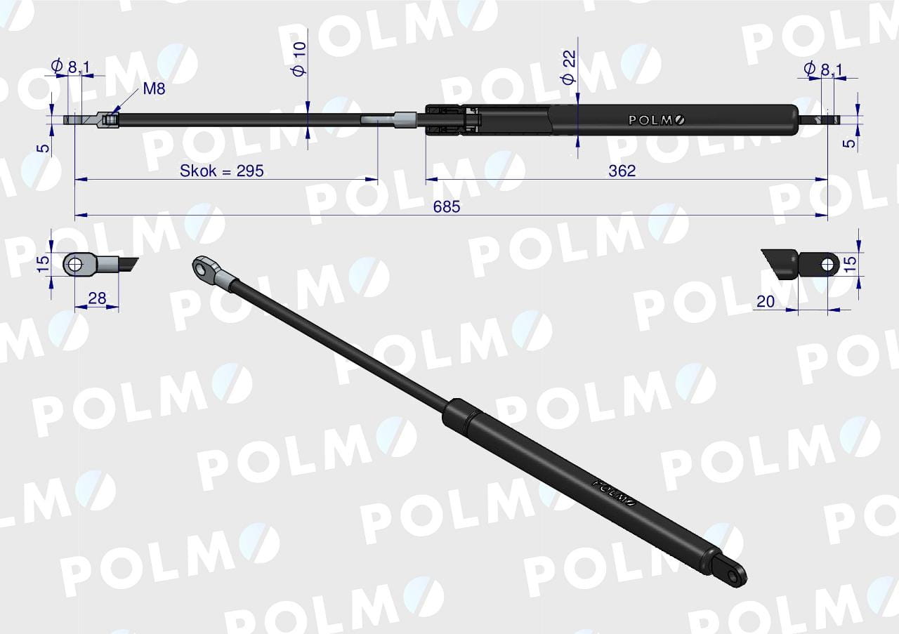 Siłownik sprężyna gazowa uniwersalna do prasy L max 685mm 084980 NEW HOLLAND CASE POLMO