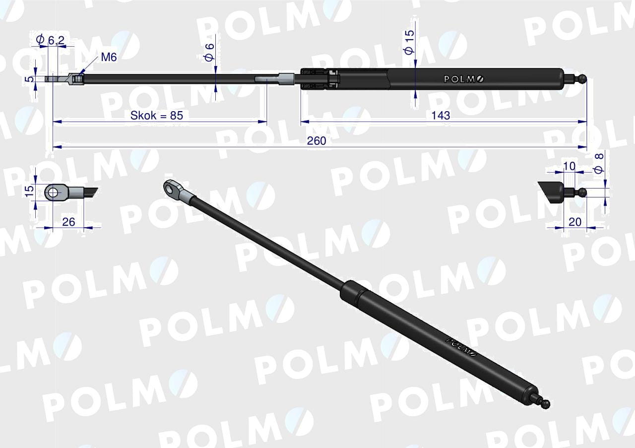 Siłownik szyberdachu L max. 260mm 65417044 FIAT POLMO