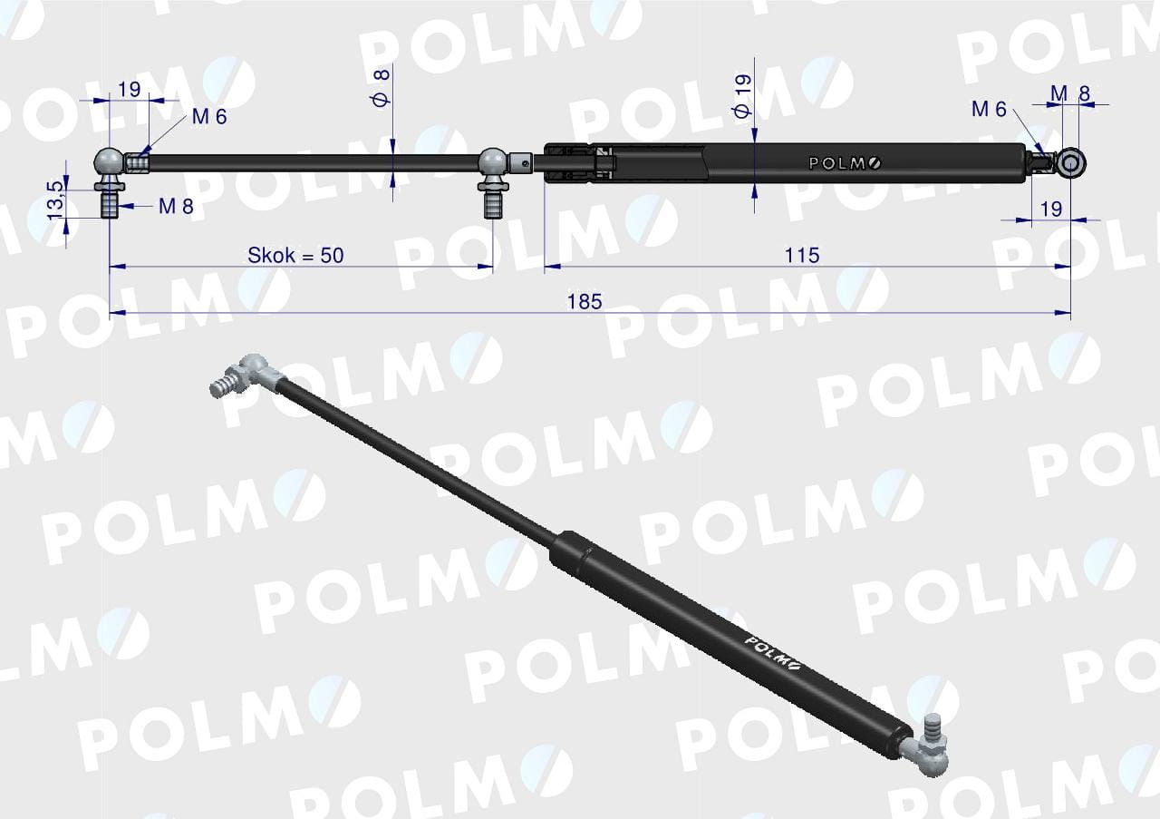 Siłownik szyby bocznej L max. 185mm 65499071 DIETEG POLMO