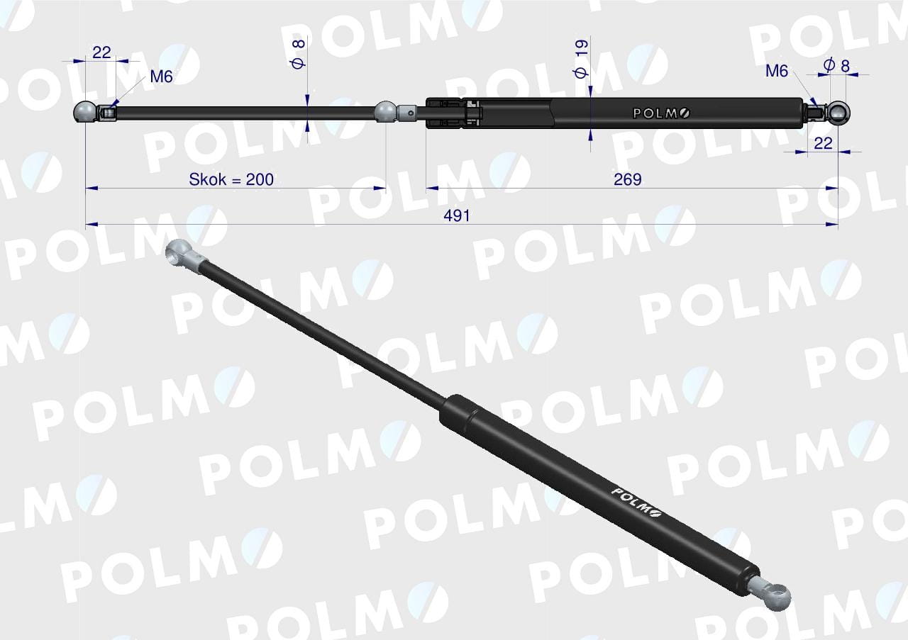 Siłownik szyby przedniej szyby tylnej L max. 491mm 189447A2P CASE IH DIETEG JOHN DEERE STEYR POLMO