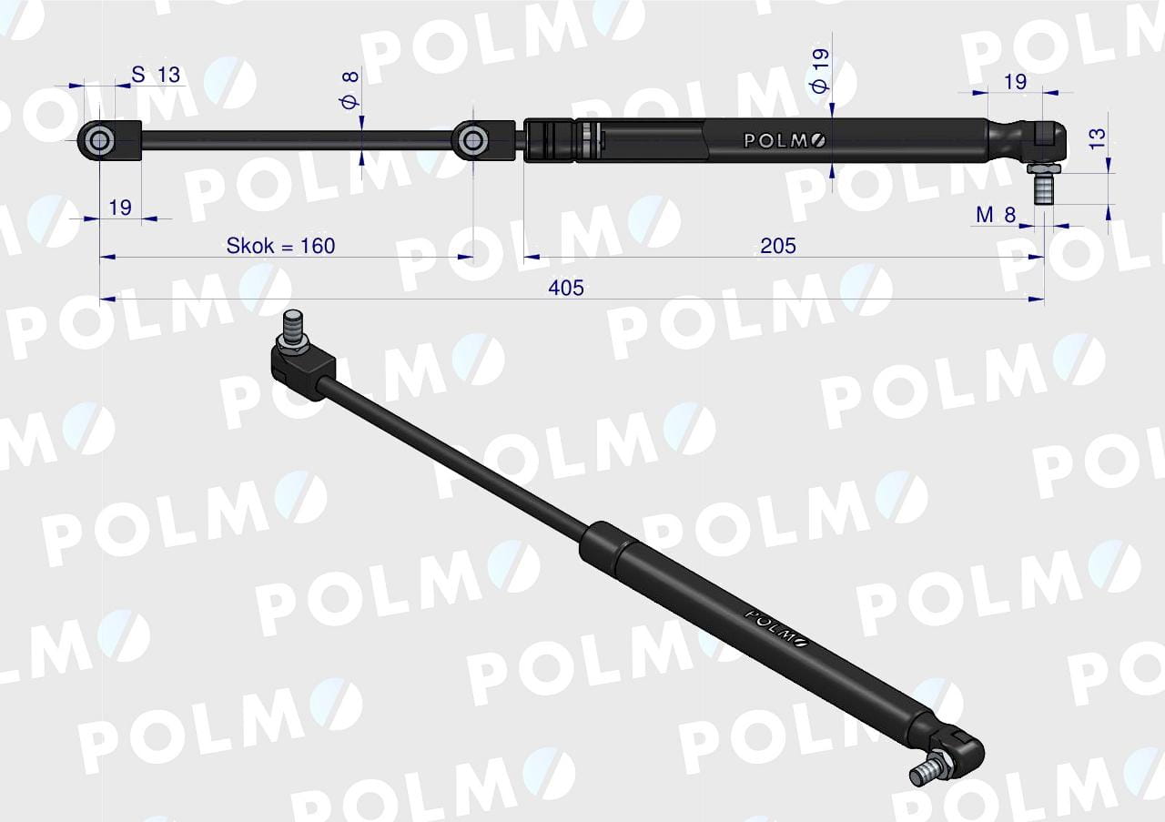 Siłownik szyby tylnej L max. 405mm 44911877P CASE IH NEW HOLLAND POLMO