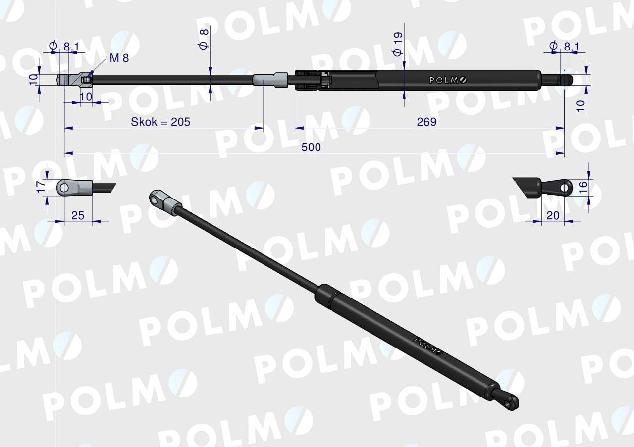 Siłownik szyby tylnej L max. 500mm 65421008 STEYR POLMO