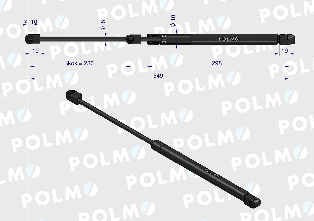 Siłownik szyby tylnej L max. 549mm 3234163R0P CASE IH POLMO
