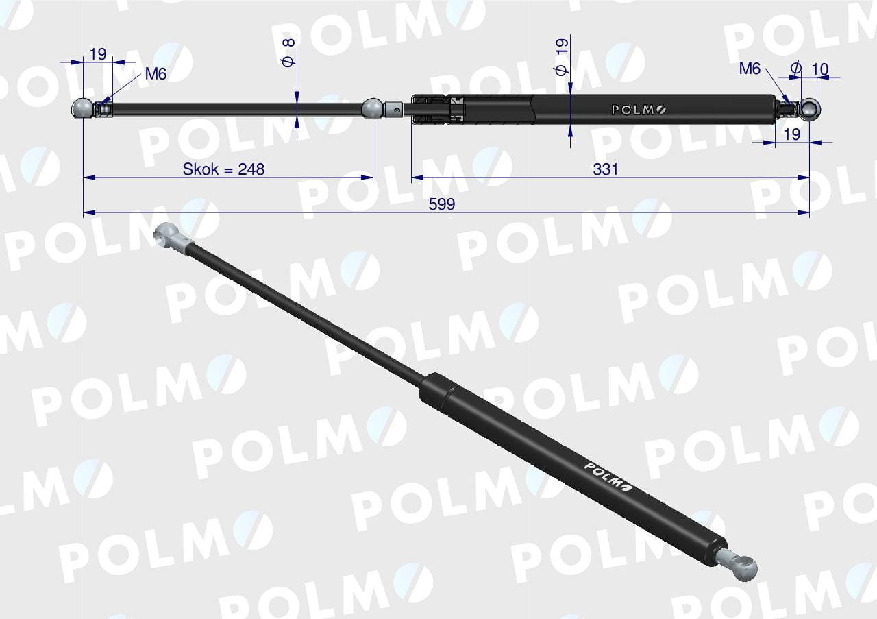 Siłownik szyby tylnej L max. 599mm CA516619P FENDT POLMO
