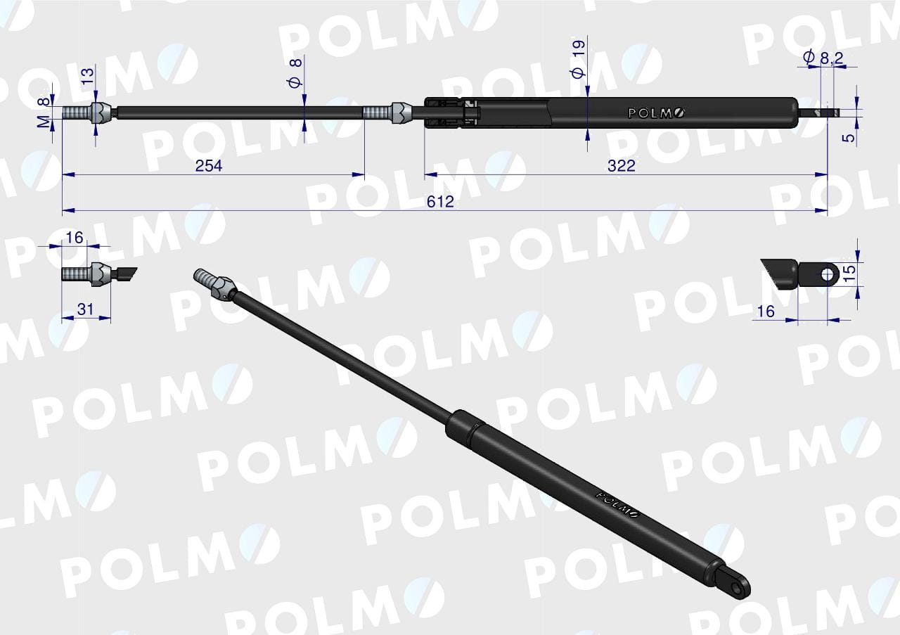 Siłownik szyby tylnej L max. 615mm 65421001 1-99-976-005 STEYR POLMO