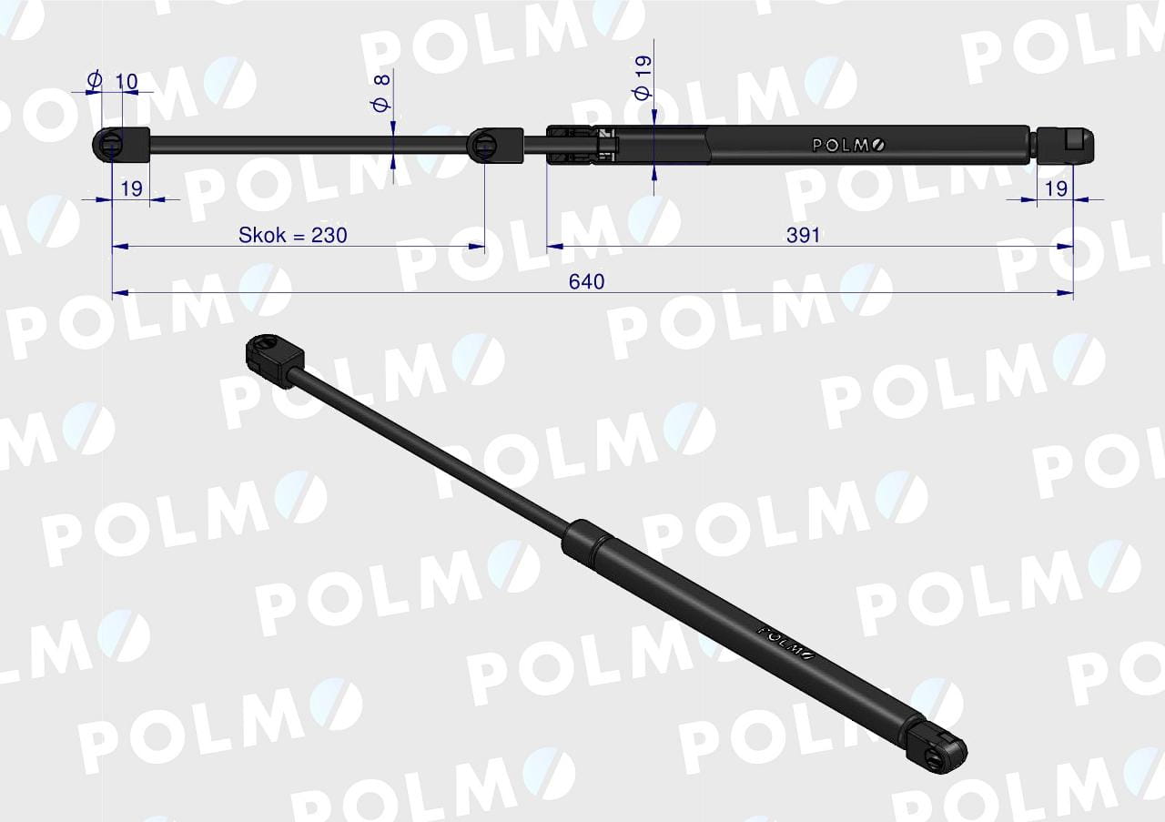 Siłownik szyby tylnej L max. 640mm 65417042 FIAT POLMO