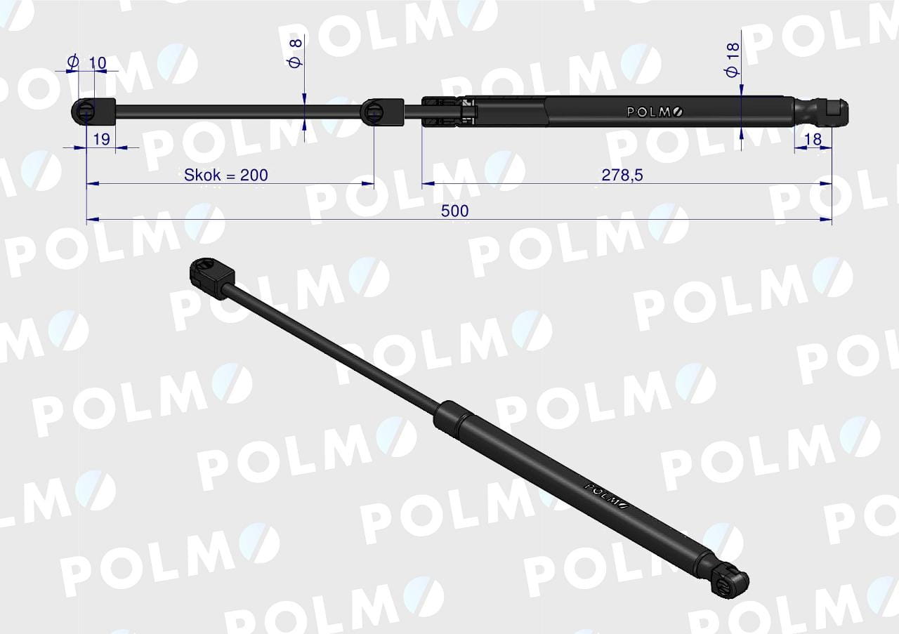 Siłownik szyby tylnej szyby przedniej L max. 505mm 3932024P CASE IH DAVID BROWN FORD JOHN DEERE LAMBORGHINI STEYR POLMO