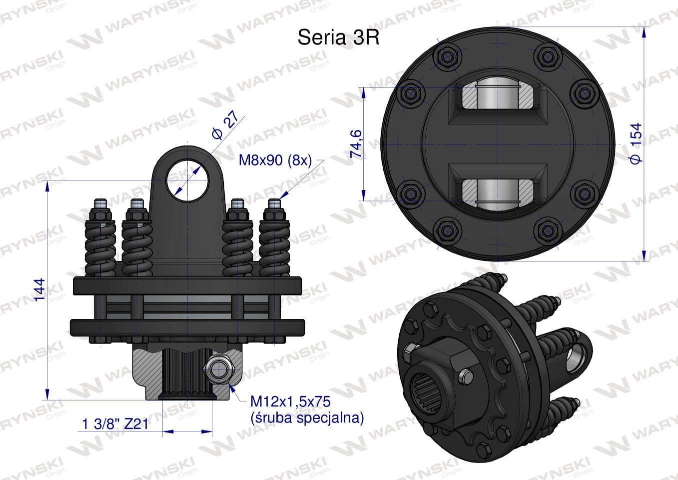 Sprzęgło cierne 2 tarczowe wału Seria 3R 900Nm - 27x75 - 1 3/8 Z21 WARYŃSKI