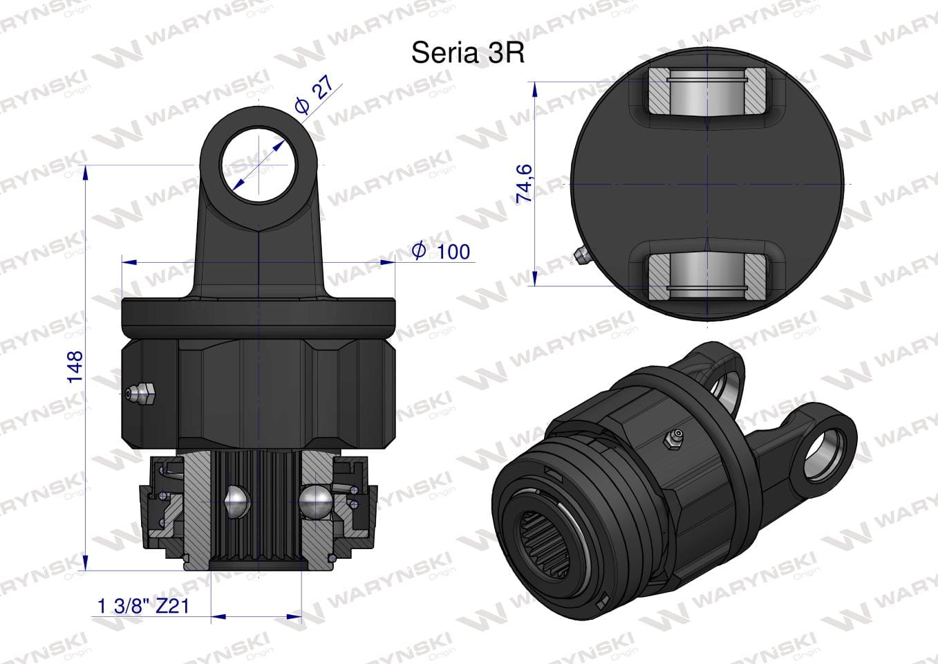 Sprzęgło jednokierunkowe prawe wału Seria 3R - 27x75 - 1 3/8 Z21 WARYŃSKI