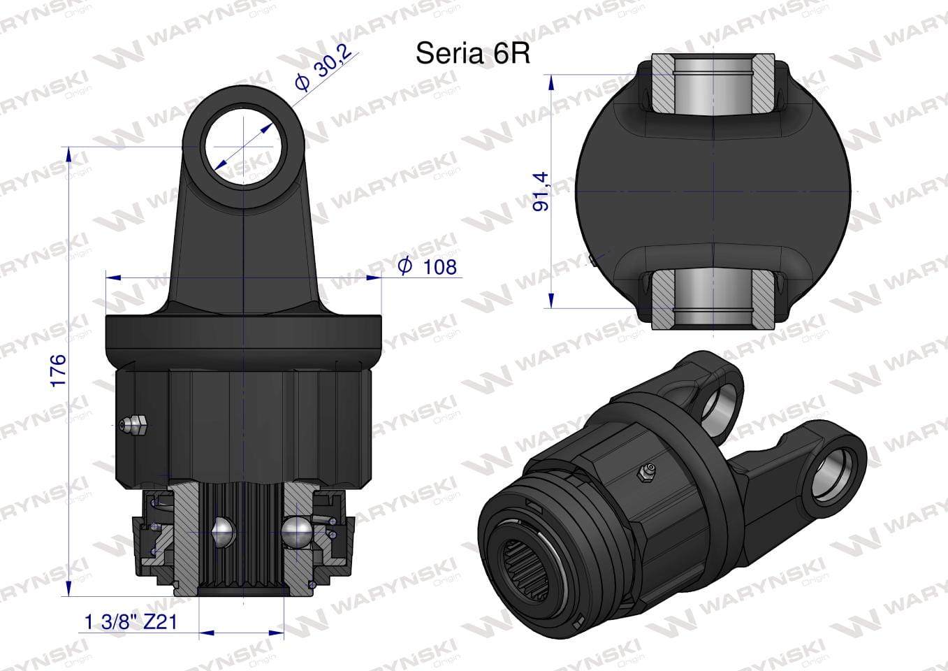 Sprzęgło jednokierunkowe prawe wału Seria 6R - 30x92 - 1 3/8 Z21 WARYŃSKI