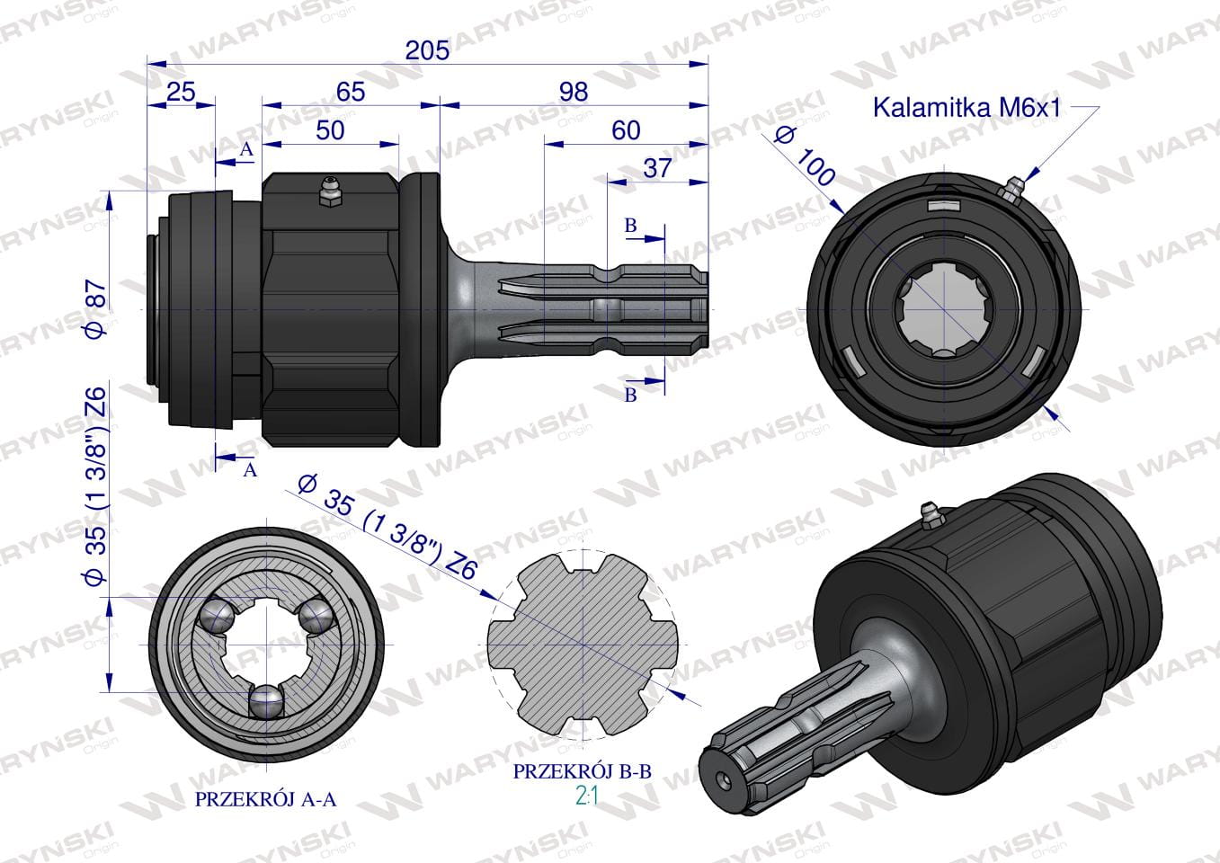 Sprzęgło zewnętrzne jednokierunkowe prawe wału długie - 1 3/8 Z6 Waryński