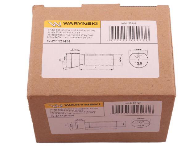 Śruba kpl. płużna oval z jednej strony ścięta M14x34 mm kl.12.9 zastosowanie Kverneland Waryński M14X34OV1 ( sprzedawane po 25 )