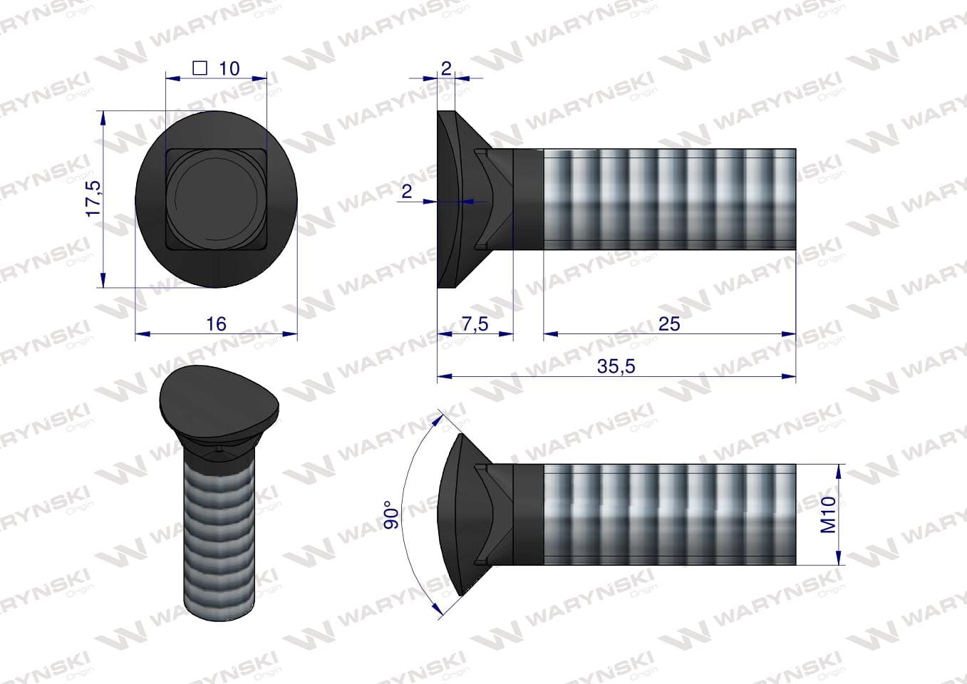 Śruba kpl. redliczkowa półokrągła M10x35 mm kl. 8.8 Waryński